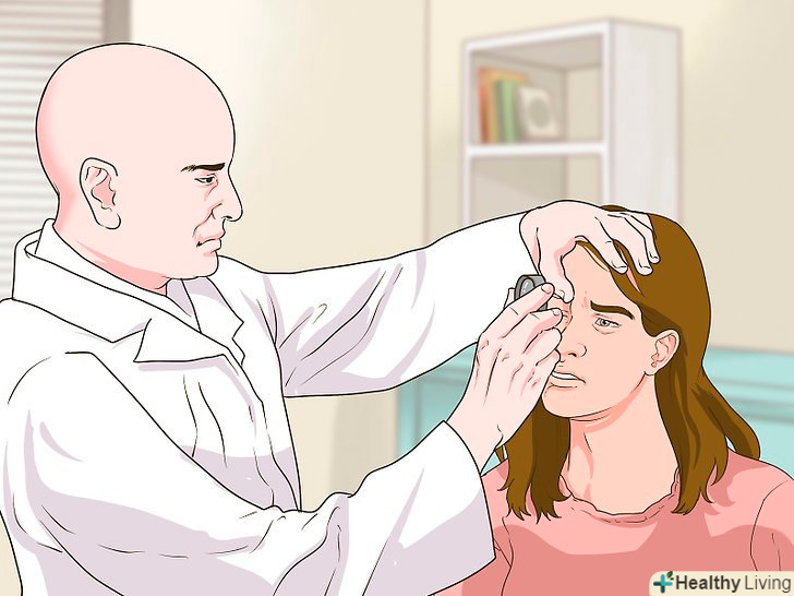 Перевірте зір і переконайтеся, що рогівка не пошкоджена.коли очі відновляться після промивання водою або сольовим розчином, перевірте зір. Зверніться за медичною допомогою, якщо в очах виникне незвичайна розмитість або перешкоди. Попросіть когось перевірити ваші очі на наявність поверхневих саден або деформацій і зверніться за медичною допомогою, якщо у вас виникнуть ці та інші пошкодження.[10]