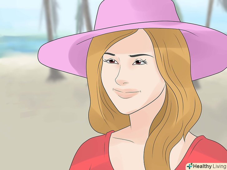 Одягайте капелюшок, коли виходите на вулицю.широкосмуговий капелюшок захистить від сонячних опіків шкіру голови, вуха і шию.[26]
