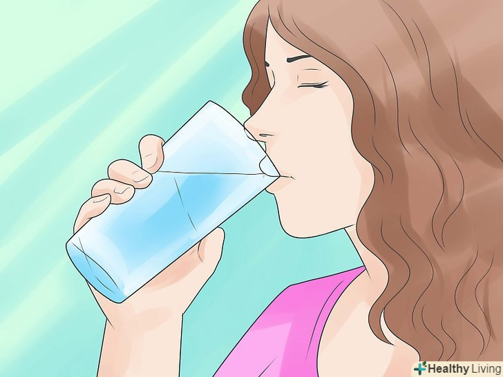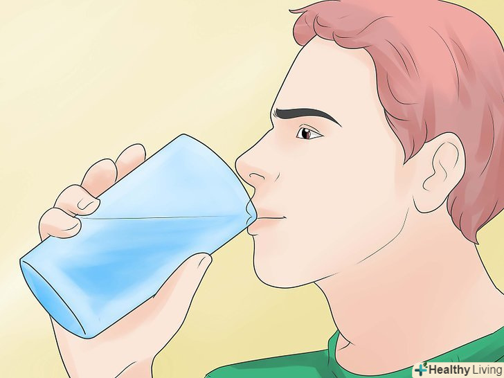 Підтримуйте здоровий водний баланс.пийте більше води, щоб наситити шкіру рідиною після отримання сонячного опіку. Сонячні опіки викликають зневоднення крові і відчуття втоми. Щоб запобігти наслідкам сонячного опіку, пийте більше води.[12]