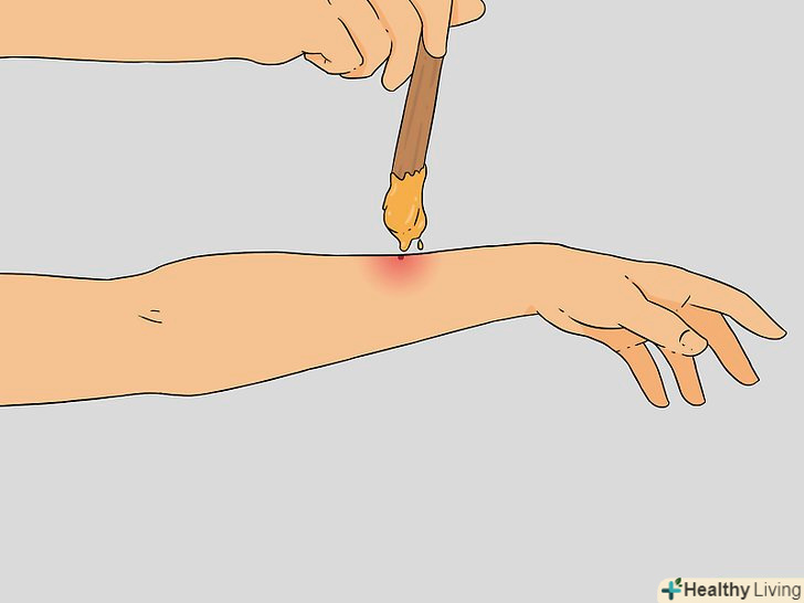 Нанесіть на місце укусу мед.зачерпніть трохи меду пальцем або ватною кулькою і змастіть їм шкіру. Мед відомий своїми антисептичними властивостями.[7] використовуйте якомога чистіший мед. Найкраще підійде 100-відсотковий мед без консервантів.