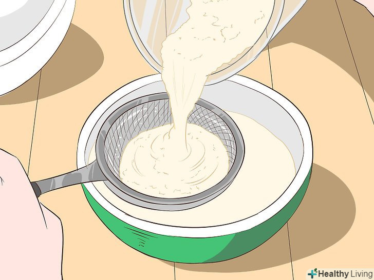 Покладіть в сито суху вівсянку і налийте води.Зберіть всю воду з вівсянки в миску. Вівсяні пластівці вам більше не знадобляться, а ось розчин буде корисний. Намочіть в мисці з розчином шматок тканини або рушник, прикладайте його до місця опіку кожні дві-чотири години.[13]- Вівсянка містить хімічні речовини, відомі як сапоніни, які очищають шкіру і одночасно зволожують її.[14]