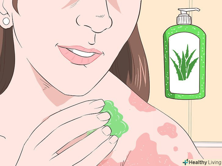 Нанесіть лосьйон з екстрактом алое вера або зволожуючий крем.нанесіть лосьйон на місце сонячного опіку, щоб зволожити і охолодити шкіру. Повторюйте процедуру частіше, або хоча б два рази на день – це допоможе зменшити сухість шкіри і дозволить уникнути лущення.- Подумайте про нанесення лосьйону або гелю з вітамінами С і Е, оскільки це дозволить зменшити пошкодження шкіри.[4]