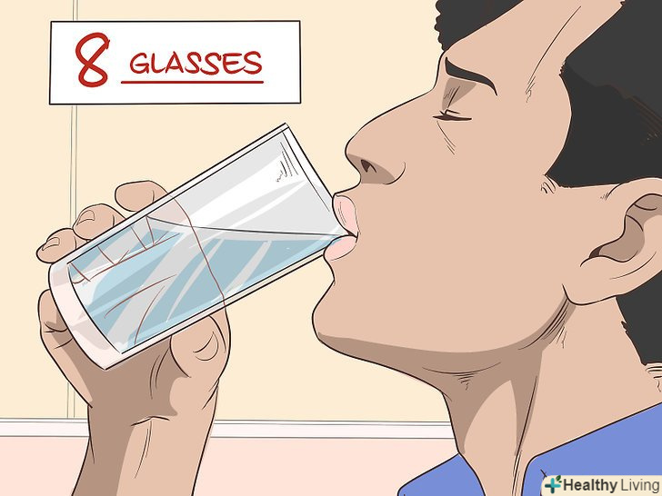 Пийте більше води.тривале перебування на сонці призводить до зневоднення. Сонячні опіки також "витягають" на поверхню шкіри воду з організму.[5] не забувайте пити більше води протягом наступних кількох днів.- Пийте більше рекомендованої добової норми (норма-вісім склянок) до тих пір, поки шкіра не відновиться. Це особливо важливо, якщо ви багато потієте, тобто, якщо ви, наприклад, продовжуєте залишатися на спеці, ведете активний спосіб життя або займаєтеся спортом.