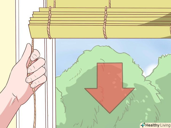 Закривайте жалюзі або штори, щоб знизити температуру будинку.якщо у вас є кондиціонер, то включіть його. Навіть якщо у вас немає кондиціонера, а є тільки вентилятор, включіть його – навіть це допоможе значно знизити температуру тіла, особливо якщо вентилятор дме прямо на місце сонячного опіку.- Підвальні поверхи в будівлі найкраще допомагають захиститися від сонця. Там, як правило, прохолодно, і туди проникає дуже мало сонячного світла.