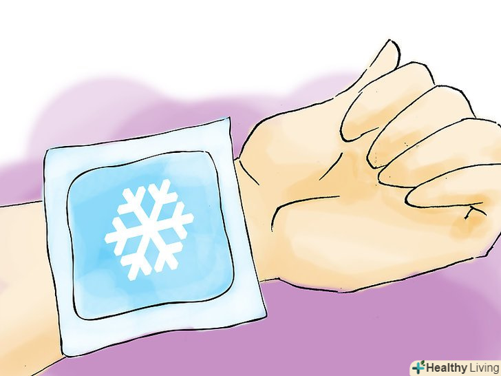 Прикладіть до постраждалої області лід або холодний предмет.[7] Холод сповільнить поширення отрути, зменшить набряк, притупить біль. Прикладайте холод на 10-15 хвилин за раз, роблячи рівні паузи між застосуваннями. Цей метод працює найкраще в перші дві години після укусу.[7]- Якщо у потерпілого є проблеми з кровообігом, прикладайте лід на 5 хвилин, щоб не спровокувати загострення хвороби.[8]