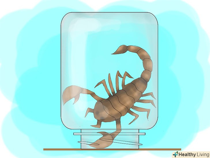 - Спіймайте Скорпіона банкою або пінцетом. Переверніть банку догори ногами і накрийте їй Скорпіона. Якщо у вас є довгий пінцет, який захистить руки від укусу, візьміть їм членистоноге і посадіть його в банку.