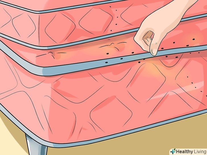 Пошукайте в будинку ознаки присутності клопів.почніть з того місця,де ви спите. Клопи намагаються перебувати ближче до людей, харчуючись їх кров'ю. Красномовним свідченням присутності клопів є червоні плями на простирадлі. Це сліди від комах, розчавлених після того, як вони напилися крові, або від свіжих кровоточивих укусів.[3]- Уважно досліджуйте матрац, включаючи складки і шви. Пошукайте сплячих і мертвих комах, їх порожні оболонки (зовнішні скелети) і екскременти (у вигляді маленьких чорних плям). Огляньте простирадла, наволочки і подушки.