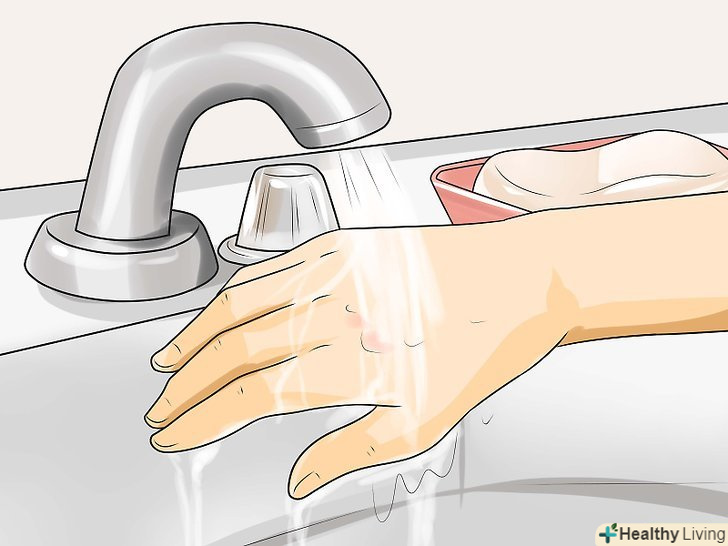 Вимийте місця укусів водою з милом.використовуйте м'яке мило; візьміть шматок мила і достатньо води, щоб змочити нею руки. Намильте долоні так, щоб їх покривала густа мильна піна. Нанесіть піну густим шаром на місця укусів. Щедро намильте всю пошкоджену ділянку шкіри. не змивайте мило відразу. Дайте мильній піні висохнути. Після цього свербіж повинен вщухнути.[6]- Вимивши місця укусів водою з милом, ви знизите свербіж і уникнете шкірну інфекцію.