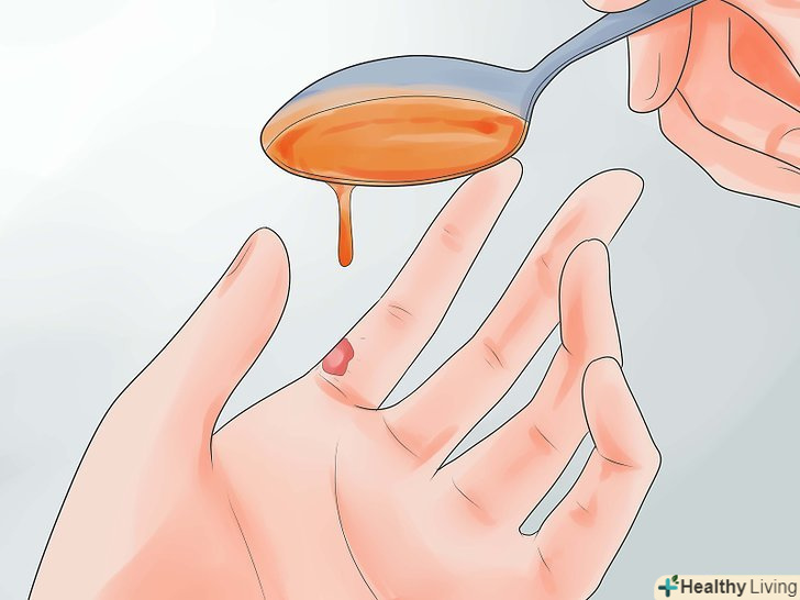 Намажте пошкоджене місце і здорову шкіру навколо натуральним медом.не економте, намастіть товстим шаром. В цьому випадку неможливо переборщити.- За допомогою тонкого целофанового пакетика ви можете рівномірно розподілити мед по шкірі.
