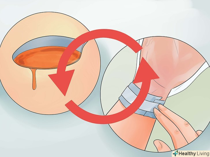 Повторюйте процедуру кожні два дні.продовжуйте контролювати стан рани і наносите мед, плівку і марлеву пов'язку до тих пір, поки на поверхні рани не почне процес грануляції (зазвичай це займає від тижня до десяти днів).- Коли на поверхні рани почне утворюватися нова тканина, приберіть пов'язку і залиште рану відкритою на одну годину. Потім знову нанесіть на рану мед і накладіть плівку і пов'язку. Ні в якому разі не змивайте мед водою!