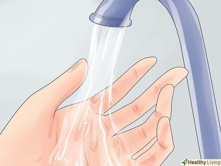 Охолодіть місце опіку якомога швидше, щоб запобігти тепловому пошкодженню тканин навколо обпаленого місця.Тримайте місце опіку під струменем холодної проточної води до тих пір, поки не відчуєте полегшення. Ніколи не прикладайте до опіку лід.- Якщо щось гаряче виявилося між пальців, відразу ж потримайтеся за мочку вуха. Тепло швидко отхлинет від місця опіку, і подальше пошкодження тканин буде мінімальним.