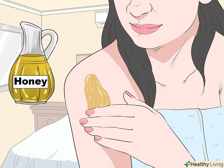 Наносите бактерицидну мазь або натуральний мед на лопнули пухирі.якщо пухир лопнув, відразу ж нанесіть на поверхню рани бактерицидну мазь або мед. Після цього накладіть поверх рани неадгезивну пов'язку-це зменшить ризик розвитку інфекції.[9]- Якщо є можливість, купіть перев'язувальний засіб, що має в своєму складі мед та інші продукти бджільництва.[10]