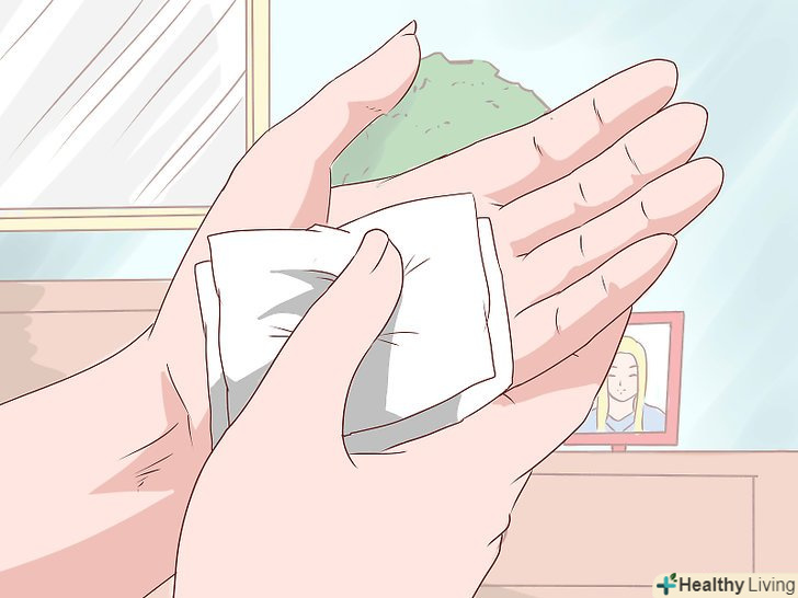 Помістіть на рану охолоджуючий пакет.через 5-10 хвилин покладіть на рану неадгезивну пов'язку або тканину і покладіть поверх неї охолоджуючий пакет або холодний компрес, щоб зменшити набряк тканин. Акуратно притисніть пакет до шкіри на 10 хвилин або до тих пір, поки не відчуєте дискомфорт.[3]- Ні в якому разі не використовуйте для цих цілей лід, оскільки низька температура може викликати пошкодження тканин.