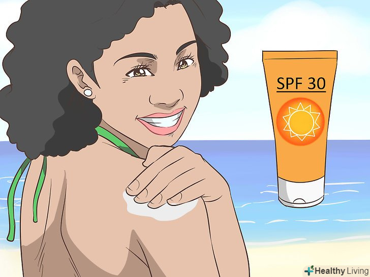 Оберігайте місце опіку від попадання прямих сонячних променів.коли на місці опіку формується нова шкіра, її відтінок відрізняється від кольору звичайної, здорової шкіри. Потрібен деякий час, щоб шкіра, що утворилася на місці опіку, придбала нормальну пігментацію. Візьміть до уваги, що протягом усього цього періоду вам потрібно оберігати молоду шкіру від впливу прямих сонячних променів — в іншому випадку на місці опіку утворюються пігментні плями. Намагайтеся, щоб місце опіку завжди було прикрите щільною, темним одягом. Обов'язково використовуйте сонцезахисний засіб з фактором SPF від 30 і вище, якщо вам все ж доведеться опинитися на сонці.[12]