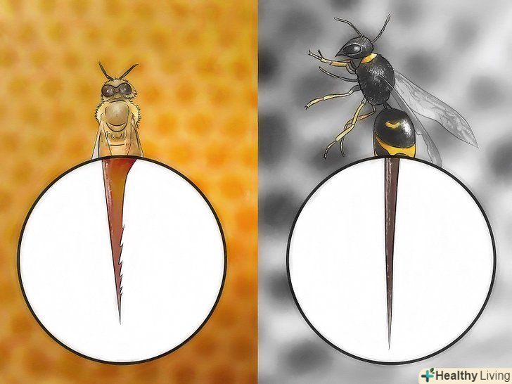 Визначте, яка Комаха вжалила вас.дії при першій допомозі будуть залежати від того, яке комаха вжалило вас: бджола або оса. Проте, в обох випадках насамперед необхідно знизити дискомфорт і зменшити опухлість в місці укусу.[5]- Оси не залишають жало, в той час як у медоносних бджіл (але не джмелів) жало має щербини і після укусу залишається в шкірі.[6]