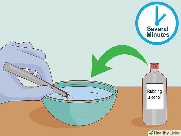 Втопіть кліща в спирті, щоб убити його.якщо ви не хочете залишати кліща, вбийте його спиртом. Наповніть склянку або миску медичним спиртом і киньте туди кліща. Зачекайте кілька хвилин, поки кліщ не помре.[12]