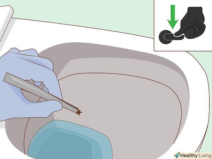 Змийте кліща в унітаз, щоб назавжди від нього позбутися.перестрахуйтеся і не викидайте кліща в сміття. Замість цього замотайте кліща в Туалетний папір і змийте в унітаз, щоб безпечно позбутися від нього.[13]