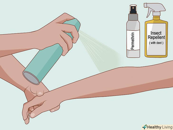 - Нанесіть перметрин на весь одяг і спорядження. Як правило, він продається в аптеках і магазинах туристичного спорядження.