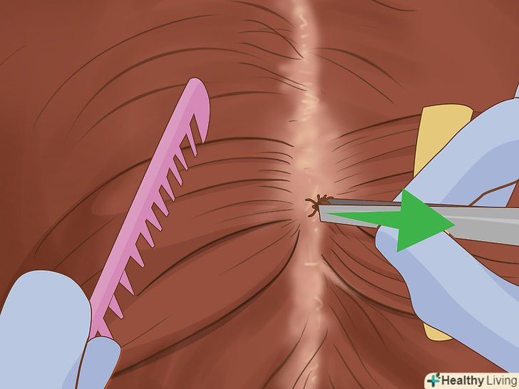 Потягніть кліща вгору.не крутите і не повертайте кліща, інакше ви його розчавите, і частина його хоботка залишиться в шкірі. Замість цього одним плавним рухом вгору витягніть кліща зі шкіри.[5]