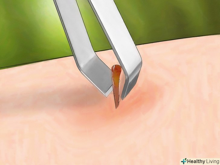 Дістаньте жало.витягніть жало пінцетом або нігтями. Вхопіться за жало якомога ближче до шкіри. Постарайтеся вхопитися за нього під мішечком з отрутою, щоб не видавити з нього більше отрути. Повільним і плавним рухом витягніть жало зі шкіри.[5][6]- Якщо жало колюче (жало бджіл, наприклад, має пилкоподібну форму), витягувати його буде неприємно.