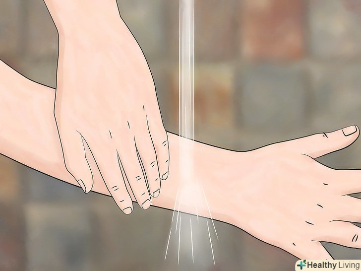 Промийте місце укусу.після того, як ви видалите жало, промийте місце водою з милом. Це знизить ймовірність зараження бактеріями.[8]- Потримайте місце укусу під проточною водою протягом декількох секунд, щоб відмити його від бруду і сміття.