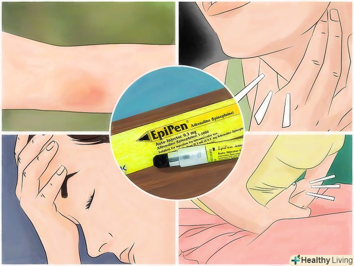 Остерігайтеся анафілактичного шоку. якщо у вас інсектна алергія, то вам, швидше за все, виписували автоін'єектор епінефрину. Використовуйте його відповідно до вказівок лікаря та інструкцій виробника. Якщо ви використовували автоін'єектор епінефрину або відчули наближення анафілактичного шоку, негайно викличте швидку допомогу по телефону 103 (з мобільного) або 03 (зі стаціонарного телефону). До симптомів анафілактичного шоку відносяться:- Свербляча шкіра;
