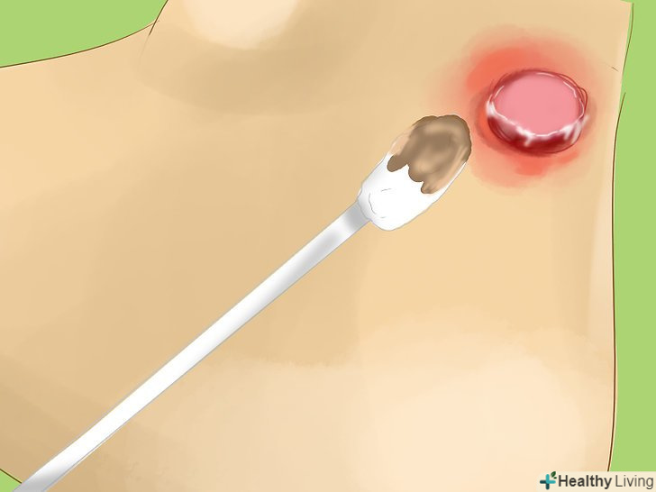 - Обробити ділянку йодом, перекисом водню або спиртом, щоб знищити залишилися бактерії. Чистим ватним тампоном акуратно протріть пухир і невелику ділянку навколо нього.