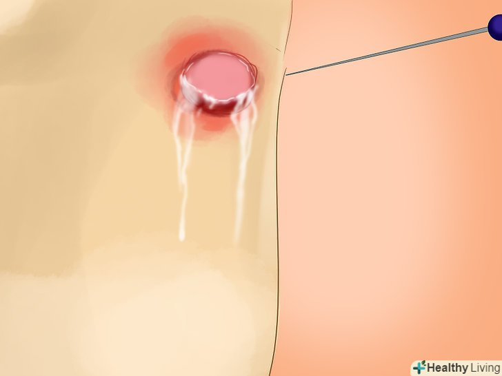 Дренуйте пухир.Дренувавши пухир, Ви зможете позбутися від рідини, не оголюючи рану і не ризикуючи занести інфекцію. Це можна зробити за допомогою простерилізованої швейної голки. [4]- Вимийте голку водою з милом. Після цього протріть голку спиртом, щоб знищити на ній всі бактерії. Так як спирт дуже швидко випаровується в повітрі, краще змочити їм ватний тампон, а потім протерти голку.