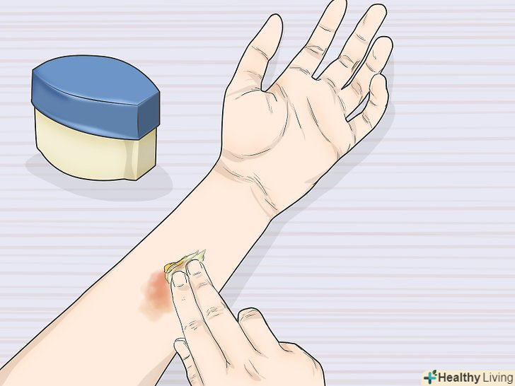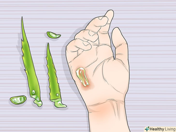Нанесіть на опік чисте алое вера або мазь з антибіотиком.купуйте 100% алое вера в місцевій аптеці або супермаркеті. Нанесіть на опік тонкий шар алое.[6]- Якщо у вас вдома росте алое, відріжте листок і видавіть з нього сік.
