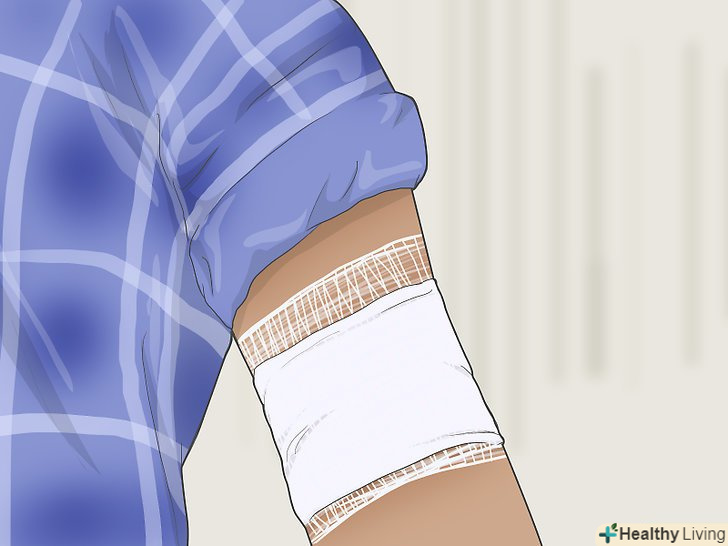 Перев'яжіть обпалений ділянкуМедичною марлею.якщо на обпаленій ділянці є пухирі і/або потріскана шкіра, його потрібно перев'язати. Забинтуйте опік 1-2 шарами медичної марлі і закріпіть лейкопластиром. Міняйте пов'язку 1-2 рази на день або якщо вона намокне або стане брудною.