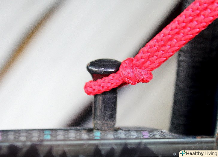 Використовуючи руху з боку в бік, опустіть вузол на потрібну висоту.Накиньте петлю на засувку замка і туго затягніть.