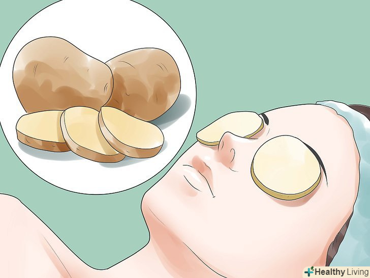 Зробіть компрес з картоплі. Картопля володіє природними підтягують властивостями.[1]- Очистіть сиру картоплю. Розріжте його навпіл. Помістіть часточки на очі на 10 хвилин. Картопля охолодить шкіру і зменшить набряклість.