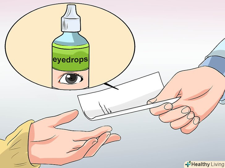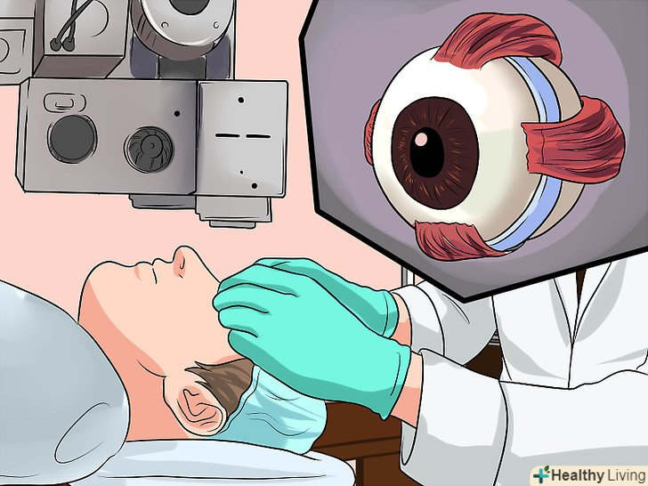 Користуйтеся очними краплями.багато людей після операції на сітківці відчувають свербіж, почервоніння, опухлість і відчуття дискомфорту. Для зняття цих симптомів лікар напевно випише вам очні краплі або порекомендує використовувати краплі, що відпускаються без рецепта.[51]- Дотримуйтесь вказівок лікаря або фармацевта щодо дозування крапель.