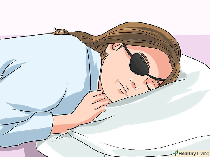 Користуйтеся очної пов'язкою і чохлом.лікар, ймовірно, порекомендує вам носити пов'язку, щоб захистити око від яскравого світла і пилу. Пов'язка допоможе запобігти пошкодженню ока об подушку і під час сну.[30]
