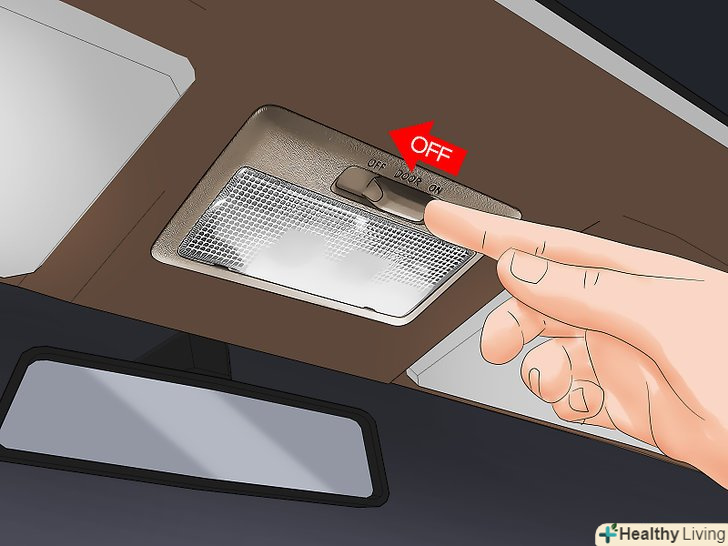 Вимикайте світло в салоні, коли користуєтеся авто.павуків приваблює яскраве світло, тому, якщо в авто завелися павуки, радимо не вмикати світло в салоні. Коли ви вночі включаєте фари, намагайтеся вимикати їх відразу після того, як припаркуєте авто.[11]- Якщо хтось в авто користується електронними приладами, попросіть його зменшити яскравість екрану.