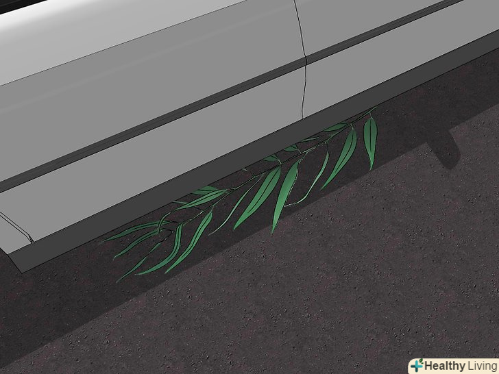 Розкидайте навколо авто евкаліптові листя, якщо хочете використовувати нетоксичний засіб від павуків.евкаліптові листя - це натуральний засіб від павуків з рослинним запахом. Покладіть свіжі евкаліптові листя в різні відсіки авто (наприклад, в багажник або відсік для рукавичок), щоб відлякати павуків від певних місць.[6]- Евкаліптові листя можна замовити онлайн або купити в місцевому розсаднику.