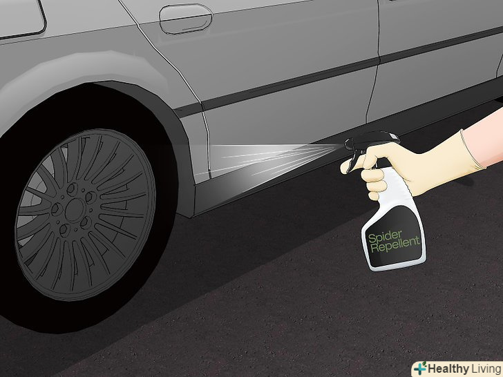 Обприскати салон авто нетоксичним засобом від павуків, якщо вам потрібно швидкодіючий засіб.засоби від павуків продаються в будівельних, садових і господарських магазинах. Знайдіть засіб, на упаковці якого буде написано «не токсичне», щоб запобігти отруєнню або подразнень на шкірі.[7] обприскати вентиляційні отвори, дзеркала заднього виду, шини і під капотом, оскільки саме в цих чотирьох місцях найчастіше ховаються павуки. Наносите засіб раз на тиждень, щоб запобігти навалу в майбутньому.[8]- Оскільки в авто будете сидіти ви і інші люди, не використовуйте отруйний засіб від павуків.