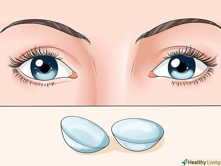 Використовуйте блакитні контактні лінзи.єдиний безпечний і на 100% надійний спосіб – використовувати блакитні контактні лінзи. Контактні лінзи-тонкі пластикові пластинки, які ви надягаєте на очі, щоб закрити природний колір райдужки і створити видимість іншого кольору. Перевага лінз в тому, що коштують вони дешево і бувають самих різних відтінків блакитного. Таким чином, ви легко можете випробувати безліч кольорів і типів лінз, щоб знайти відповідний саме вам.- Майте на увазі, що деякі лінзи і деякі кольори можуть зробити ваш зір розмитим і затуманеним.