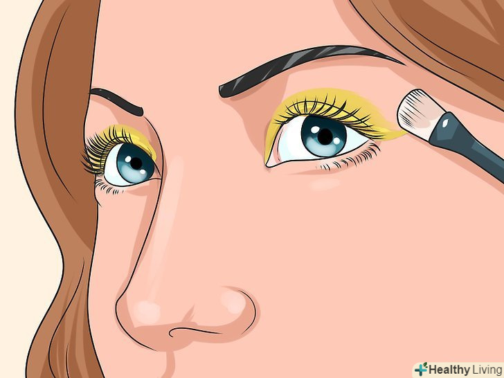 Зміни в макіяжі.якщо ви наносите макіяж, то можете змінити його кольору так, щоб підкреслити природні відтінки блакитного вашої райдужки; якщо у вас темний колір очей, ви можете надати їм синяви. Якщо в кольорі ваших очей є природні блакитні відтінки, спробуйте використовувати мідні або золоті тіні для очей. Теплі кольори бронзових тіней винесуть на перший план блакитні тони вашої райдужки. Якщо у вас карі очі, спробуйте нанести тіні холодного синього відтінку - ви додасте бажаний колір навколо очей, і на відстані ваші очі будуть виглядати блакитними.- За допомогою пензлика для тіней нанесіть тіні по всій повіці, і на зовнішній кут нижніх вій.