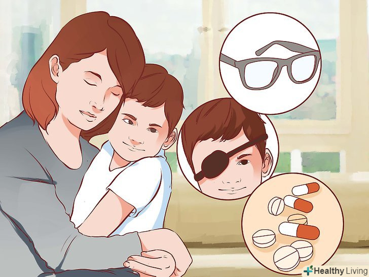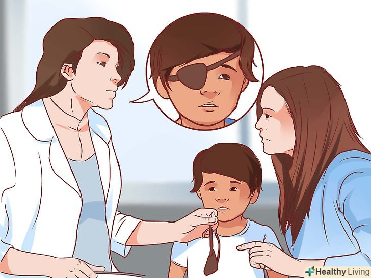 Дізнайтеся про різні методи лікування.після перевірки зору офтальмолог зможе призначити відповідне лікування. При амбліопії лікування може включати в себе носіння окулярів або очної пов'язки, а також прийом медикаментів.- Лікар може порекомендувати операцію на очних м'язах, яка дозволить повернути їх в правильне положення. Така операція виконується під загальним наркозом. При цьому на оці робиться невеликий розріз, і очна м'яз подовжується або коротшає в залежності від того, як слід відкоригувати хворе око. Після операції може знадобитися очна пов'язка.[42]