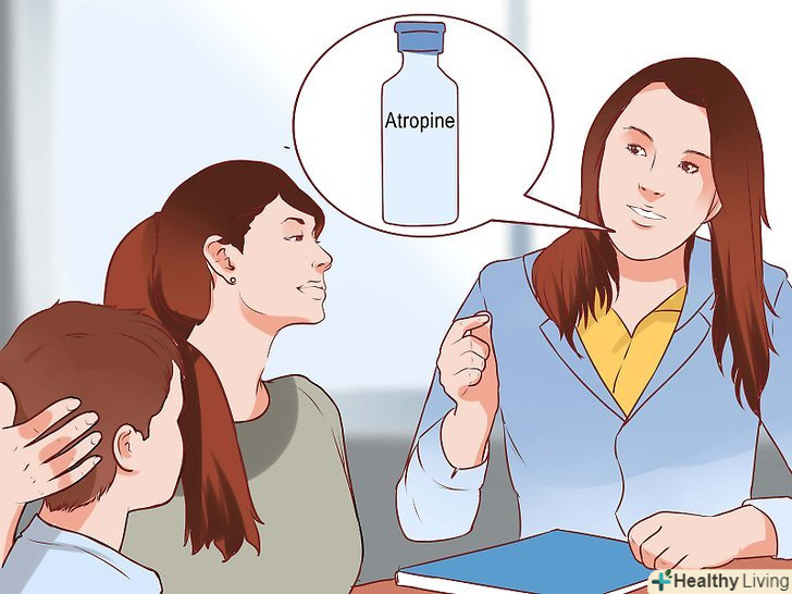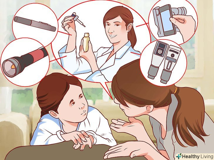 Розкажіть дитині, чого слід очікувати.при відвідуванні лікаря маленька дитина може злякатися нової обстановки. Розкажіть дитині про майбутній візит до лікаря, щоб підготувати і заспокоїти його. Це допоможе дитині спокійніше поводитися під час огляду. Постарайтеся, щоб перед візитом до лікаря дитина не був голодний, не хотів спати і пити, так як це може ускладнити огляд.[34]- Швидше за все, лікар закапає дитині очі, щоб розширити зіниці. Це допоможе визначити здатність очей заломлювати світло.[35]