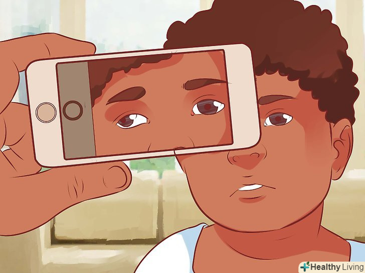Проведіть фотографічний тест.якщо ви підозрюєте, що очі дитини дивляться в різних напрямках, фотографії очей допоможуть визначити цей дефект. Ви зможете уважно вивчити фотографії і виявити характерні ознаки. Даний тест особливо корисний для розпізнавання проблем із зором у немовлят і маленьких дітей, коли дитина не може зберігати нерухомість протягом тривалого часу, який необхідно для огляду його очей.[17][18]- Можна використовувати вже готові фотографії, на яких чітко видно очі дитини. Якщо у вас немає відповідних фотографій, попросіть когось допомогти вам зробити кілька нових знімків.