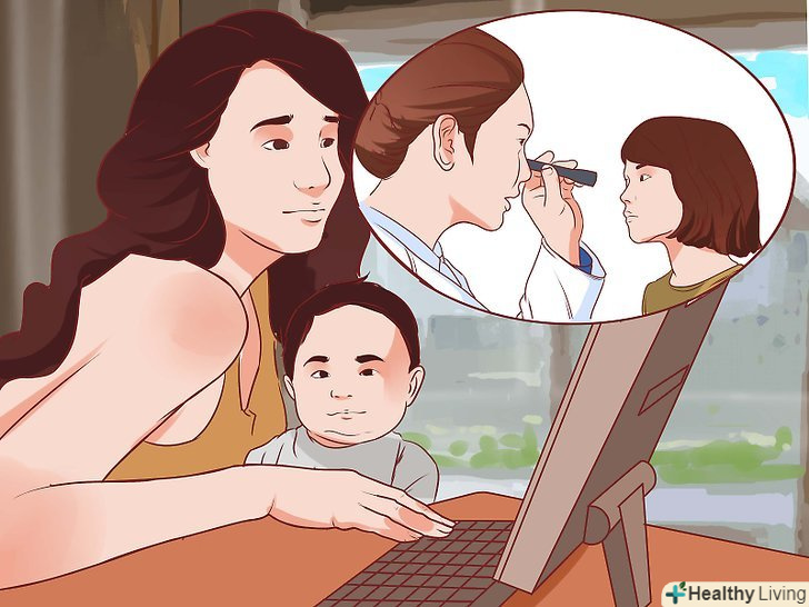 - Попросіть дитячого офтальмолога перевірити, чи немає косоокості та інших проблем із зором у дитини молодше 6 місяців. У цьому віці у дітей настільки інтенсивно розвивається зір, що буває складно виявити проблеми самостійно.[15]