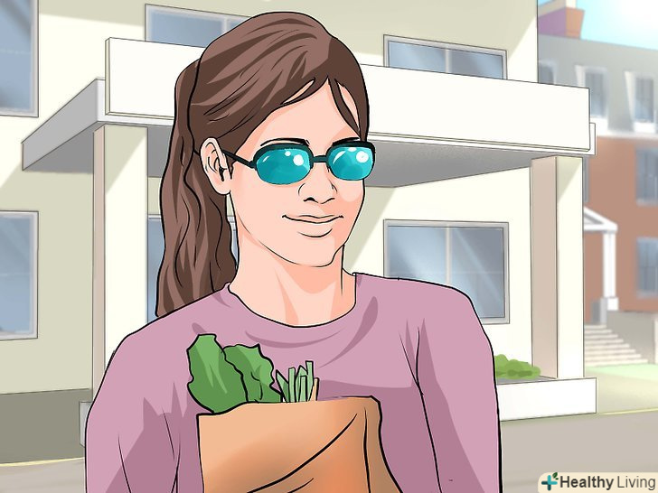 Носіть сонцезахисні окуляри.при подряпаній рогівці ока непогано носити сонцезахисні окуляри, щоб очі не страждали від чутливості до яскравого сонячного світла. Часом подряпина рогівки ока викликає підвищену чутливість до світла. Ви ж можете захистити свої очі носінням сонячних окулярів із захистом від ультрафіолету, в тому числі і всередині приміщень.[18]- Якщо ви страждаєте від особливо вираженої чутливості до світла або спазмами століття, окуліст може призначити вам краплі, що розширюють зіницю. Це допомагає знизити больові відчуття і розслабити очні м'язи. Про правильне застосування очних крапель розказано в третій частині статті.