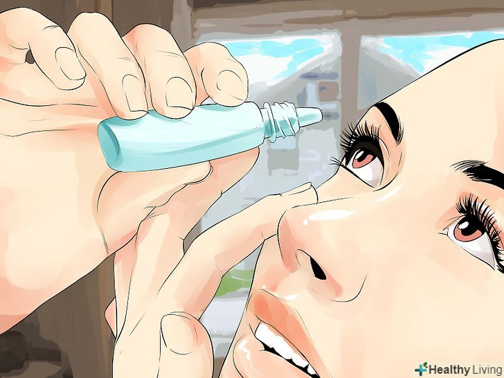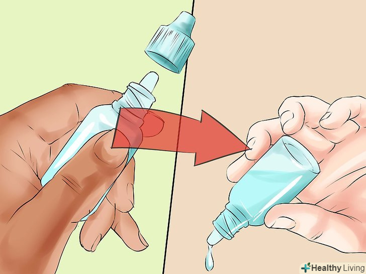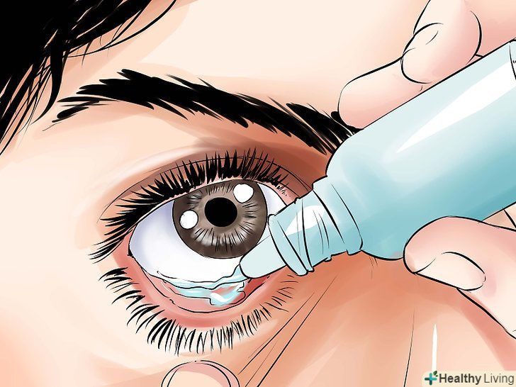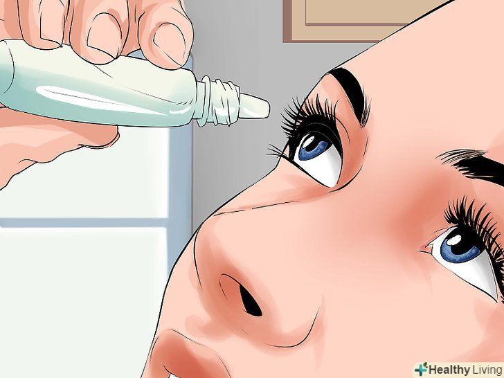 Скористайтеся очними краплями.іншим способом видалення стороннього тіла з ока служить використання для його вимивання очних крапель зі змазує дією. Подібні очні краплі можна придбати в будь-якій аптеці без рецепта лікаря. Краплі можна закапати собі самостійно або попросити кого-небудь допомогти вам. Правильна процедура застосування крапель описана в третій частині статті.- Змащувальним дією володіють краплі на основі штучної сльози, при цьому вони ще зволожують зовнішню поверхню ока. Такі краплі продаються без рецепта і доступні в широкому розмаїтті торгових марок. Деякі краплі зі штучною сльозою містять консерванти, що допомагають їм довше зберігатися на поверхні ока. Проте, ці консерванти можуть надавати подразнюючу дію на око, якщо використовувати краплі частіше чотирьох разів на день. Якщо вам необхідно користуватися краплями зі штучною сльозою частіше чотирьох разів на день, то підшукайте таку марку засобу, яка не матиме в складі консервантів.[6][7]