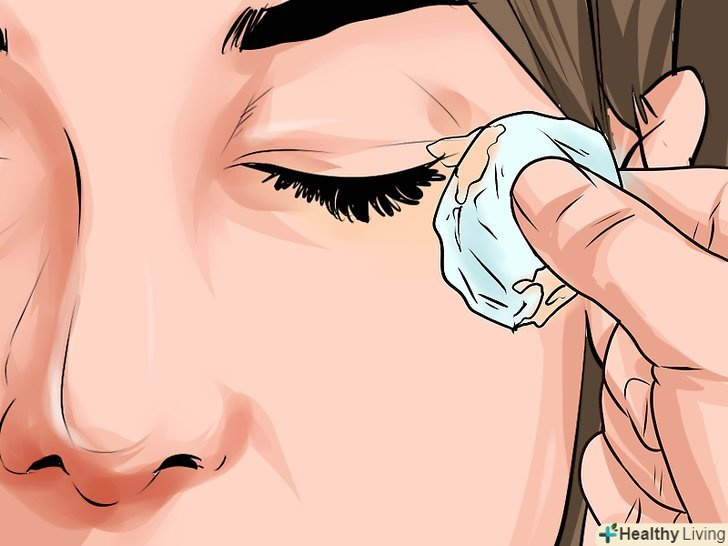 Витріть шкіру навколо ока.візьміть м'яку ганчірочку або хустку і обережно прикладіть до ока, щоб увібрати витекли краплі. [24]