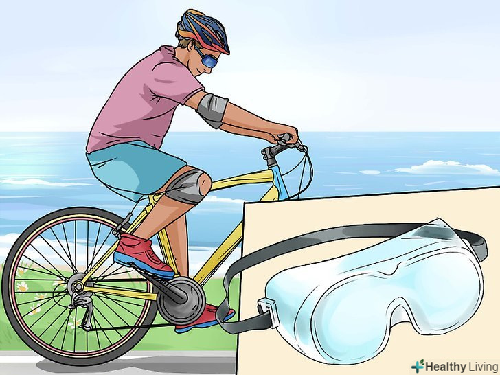 Надягайте захисні окуляри, коли займаєтеся травмонебезпечними справами.на жаль, травмувавши рогівку один раз, Ви вже будете більш схильні до повторних травм. Тому дуже важливо в певних ситуаціях дотримуватися техніки безпеки і надягати захисні окуляри.[25] наприклад, згідно з даними досліджень, носіння захисних окулярів під час роботи знижує ризик отримання травми очей більш ніж на 90%.[26] постарайтеся надягати захисні (або хоча б звичайні) окуляри під час наступних видів активності:[27]- При грі в софтбол, пейнтбол, лакросс, хокей і ракетбол;