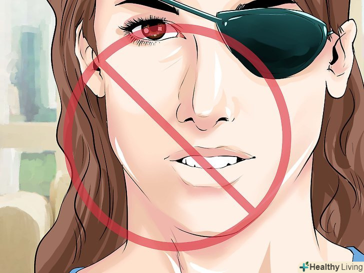 Не робіть пов'язку на око.раніше пов'язка на око використовувалася в якості традиційного методу лікування подряпин рогівки, але недавні дослідження показали, що наявність пов'язки на оці може посилювати больові відчуття і уповільнювати одужання. Пов'язка стримує природне моргання ока, напружуючи повіку і викликаючи біль. Також вона призводить до посиленого сльозотечі з ока, що створює сприятливі умови для появи інфекції і уповільнює настання одужання.[14]- Пов'язка на оці також перешкоджає нормальному доступу кисню до ока, а рогівка дуже сильно від нього залежить.[15]
