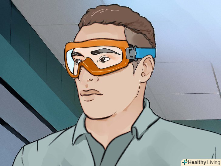 Захисні окуляри.якщо на робочому місці ви маєте справу з небезпечними летючими матеріалами, завжди використовуйте захисні окуляри. Також захист органів зору слід використовувати при заняттях контактними видами спорту на зразок хокею на льоду, поєднуючи окуляри з шоломом і іншими матеріалами, які захистять голову і очі від пошкоджень.[3]