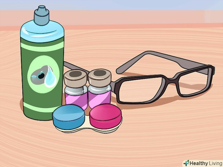Регулярно міняйте і промивайте контактні лінзи.завжди правильно доглядайте за своїми лінзами і ретельно мийте руки, коли збираєтеся знімати їх. Знімайте лінзи на ніч і залишайте їх в чистячому розчині. Кожну ніч наповнюйте контейнер новим розчином.[9]- Не забувайте стежити за тим, коли настає пора змінити лінзи. Старі контактні лінзи підвищують ризик виникнення інфекції. Частота зміни лінз залежить від марки продукту, яку ви використовуєте. Деякі лінзи слід міняти щомісяця, а деякі можна носити кілька місяців. Не забудьте поцікавитися цим питанням у лікаря.